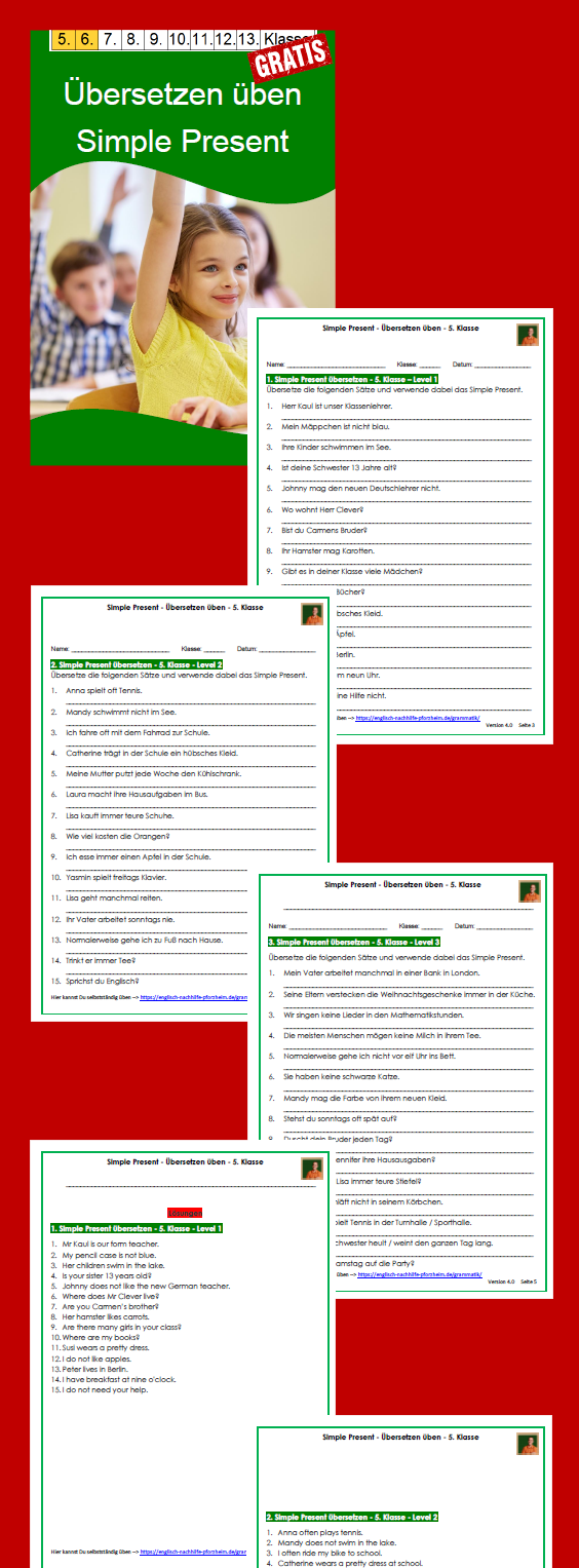 Startseite→Simple Present übersetzen üben - Arbeitsblätter mit Lösungen →Simple Present übersetzen üben – Arbeitsblätter mit Lösungen
